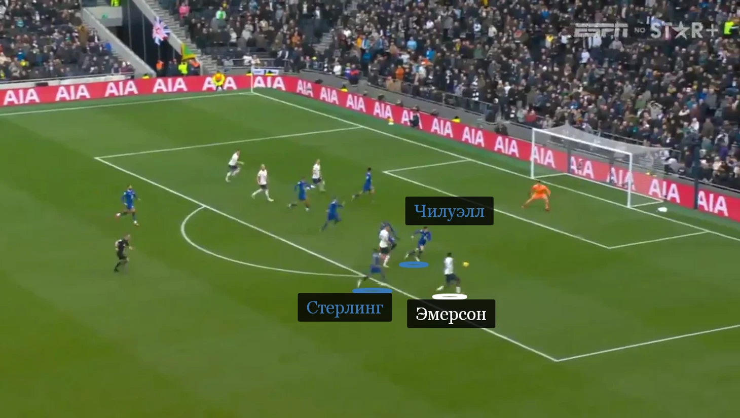 Голевой эпизод начался с удара Эмерсона. Если справа Зиеш опускался на помощь Джеймсу, то слева Стерлинг держался более высокой позиции. Бразилец воспользовался ситуацией и открылся как раз в зоне Бена, после чего – пробил.