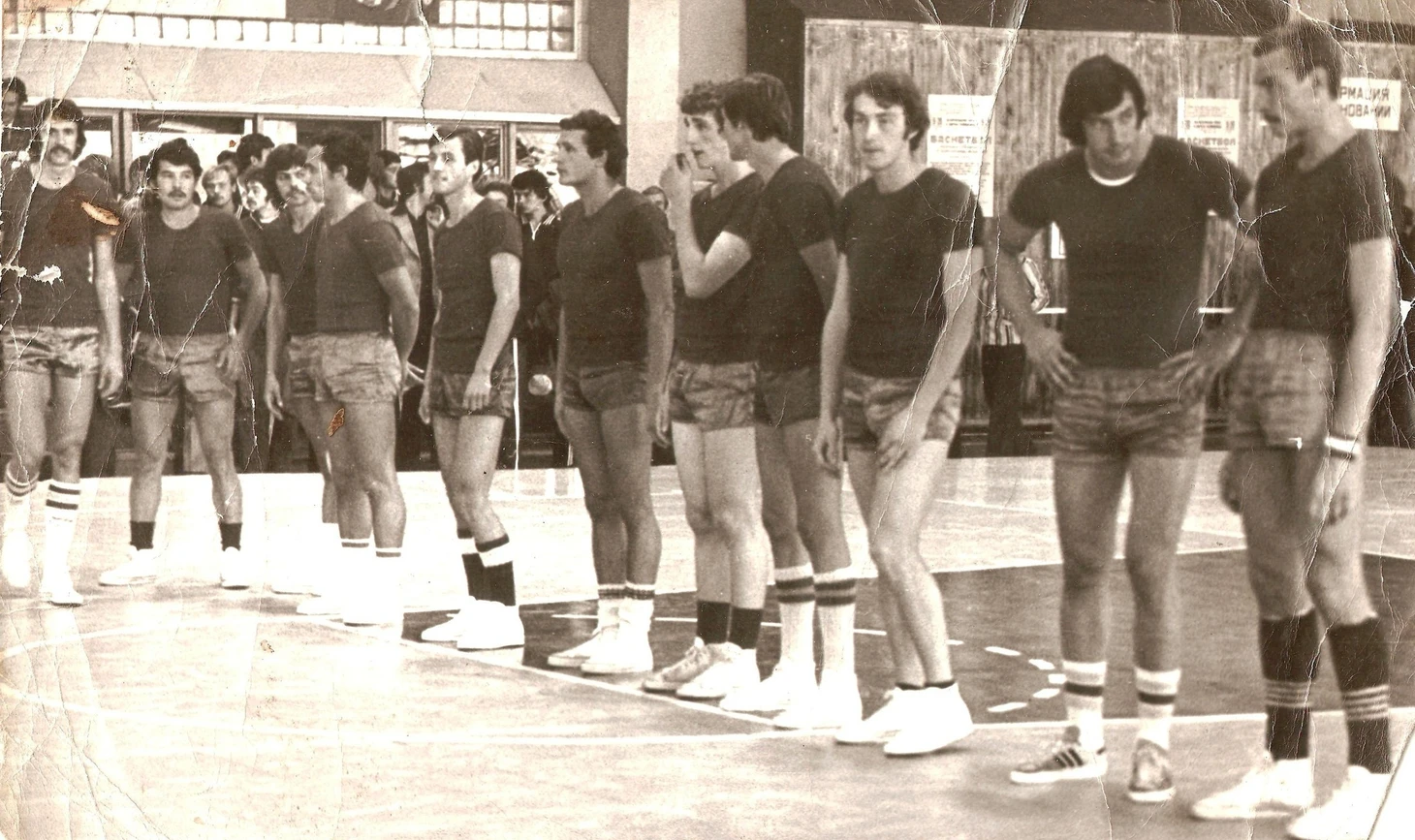 1978 год. Сентябрь. Сборная Иркутской области, занявшая седьмое место в VII Спартакиаде народов РСФСР. Слева направо: Алексей Исаченко–ст, Сергей Теплов, Александр Старосельцев, Анатолий Дёмин, Алексей Исаченко–мл, Валерий Алексеев, Игорь Морозов, Сергей Барский, Андрей Тараканов, Анатолий Сологуб, Сергей Уфимцев