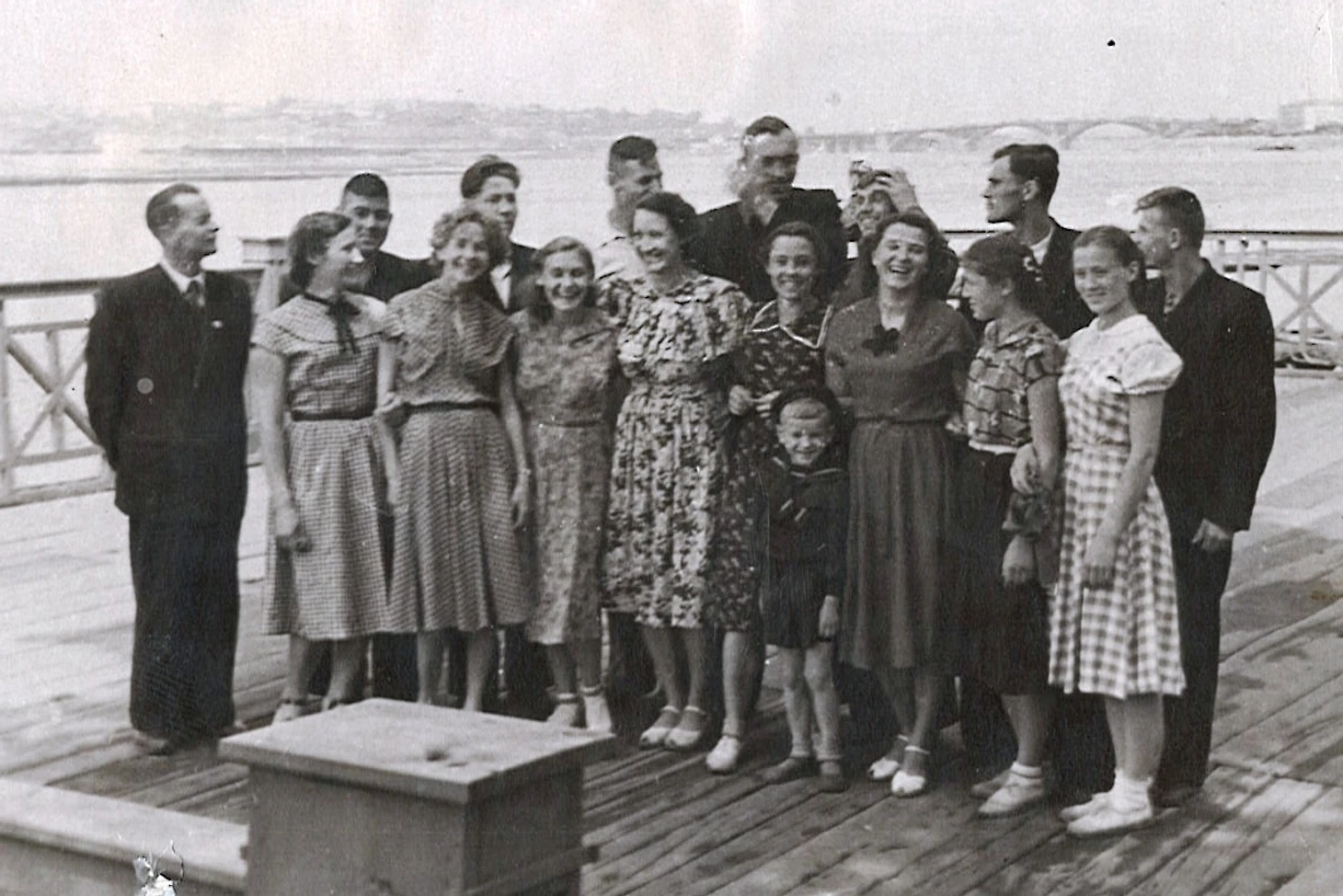 1956 год. Женская и мужская команда в Ангарске в мае 1956 года. Крайний слева — Анатолий Бочаров. Третий слева — Петрас Валюшайтис с сыном Римасом