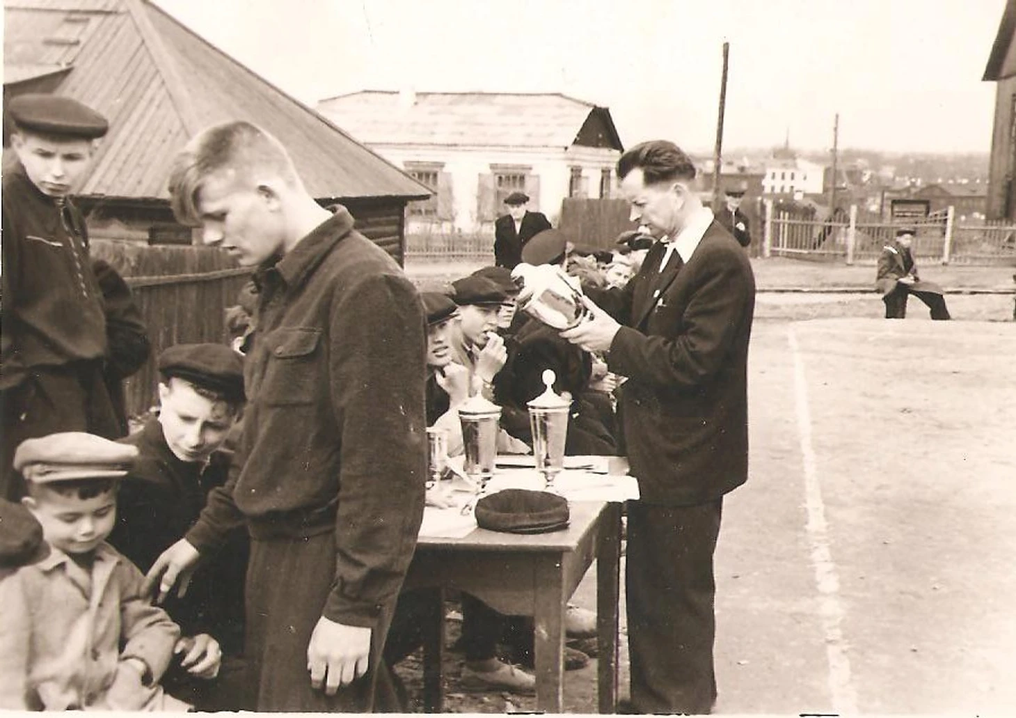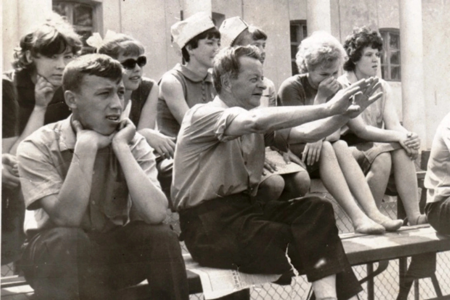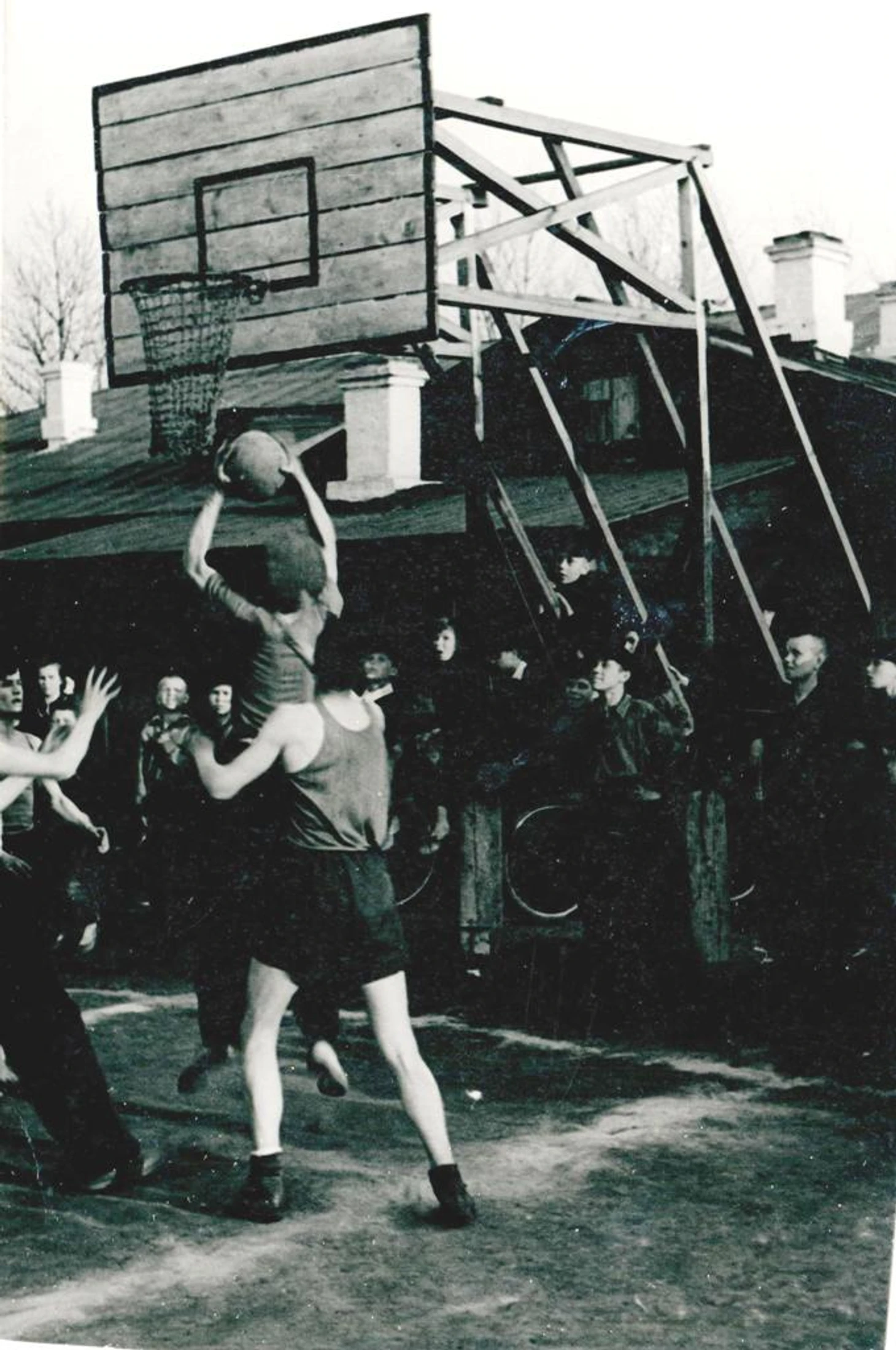 Петрас Валюшайтис на баскетбольной площадке в Черемхово. Фото 1960 года