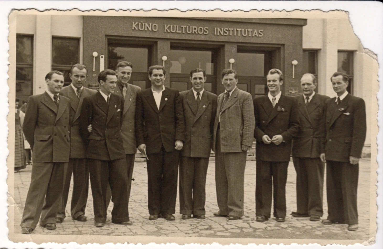 Первый выпуск каунасского института физкультуры 1948 года.Четвертый слева — Стяпас Бутаутас, шестой — Юстинас Лагунавичюс. Оба чемпионы Европы в составе сборной СССР и чемпионы СССР в составе «Жальгириса» в 1947 году. Крайний справа — Петрас Валюшайтис