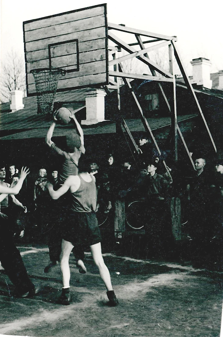 — Война летом 1941 года пришла в наш дом стремительно — жили мы в белорусском городке Лобжа. Отец сразу ушел на фронт, погиб в боях под Сталинградом в 1942 году, нам с матерью чудом удалось бежать в Сибирь — к родственникам в Черемхово. Уже после войны, когда учился в пятом классе четвертой черемховской школы, первый раз сыграл в баскетбол. Наш учитель физкультуры — Николай Григорьевич Осеев, был поклонником игры, вот и увлек нас, пацанов. Мастерили мячи из резиновой ленты угольных транспортеров по лекалам из книги «Сделай сам: спортивные снаряды» (камеры покупали в магазине, надували ртом), построили в школьном дворе баскетбольные кольца — с фермами и выносом — особый шик тогда. В качестве силовых «тренажеров» использовали колеса от вагонеток. Играли в два тайма по 20 минут «грязного» времени. Матч запросто мог завершиться и со счетом 2:0 — мяч можно было держать сколько угодно и забившие первыми всё остальное время играли на удержание.