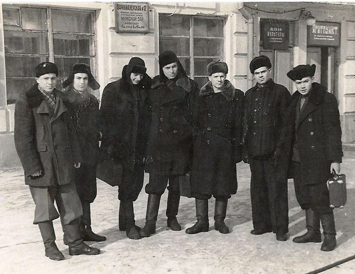 Сборная Забайкальского военного округа, 1960 год. Слева–направо: ?, Фарид Тахватуллин, Борис Денисов, Станислав Обухов, Вадим Ромашов, Владимир Савицкий, Игорь Скрипкин, Борис Чумаков, Владимир Волков