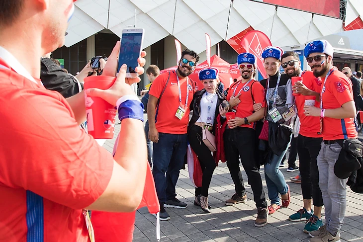 – За кого вы сегодня болеете? – спрашиваю у девушек, только что наделавших селфи с чилийцами.