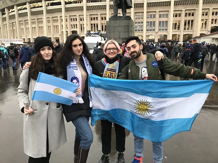 К Севани (на фото – вторая слева) подходили, думая, что она из Аргентины. На самом деле девушка из России (имя – азербайджанское) и всю жизнь болеет за Месси.
