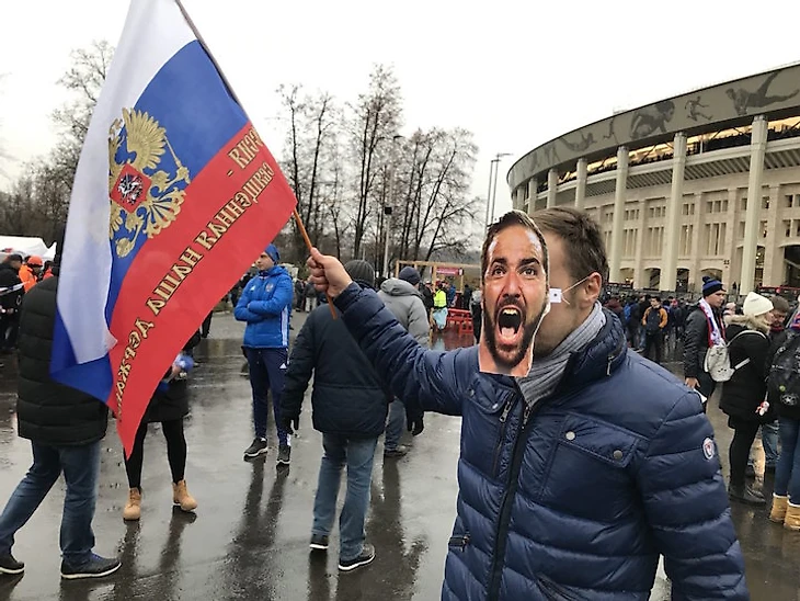 Парень с российским флагом надел маску Игуаина и сказал, что главные звезды Аргентины играют за «Ювентус».