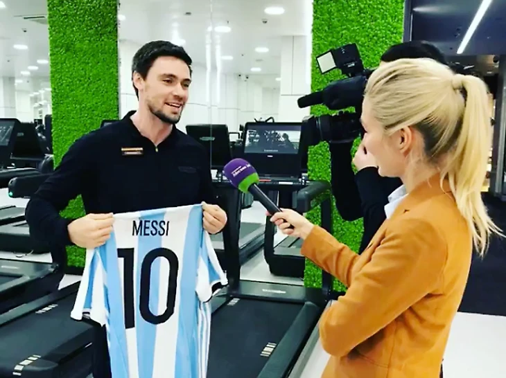 Вячеслав Абдусаламов работает тренером в фитнес-клубе гостиницы «Украина», и он точно главный счастливчик этой недели. Бывший корреспондент канала «Наш футбол» когда-то стал известен благодаря перфомансам во флеш-интервью. А теперь у него есть фото со всеми звездами Аргентины, футболка Месси с автографом и пара советов от Серхио Ромеро.