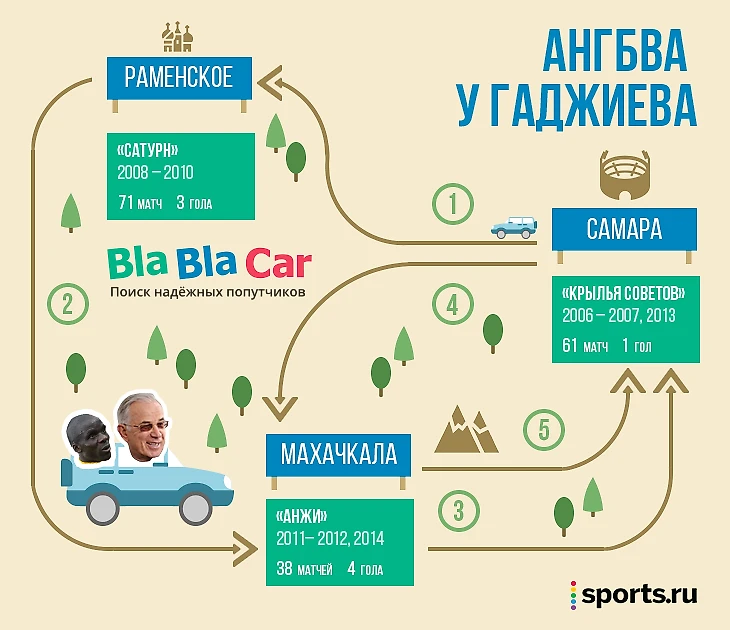 Ангбва ездил за Гаджиевым по всей России, был с ним в трех городах. За активным африканцем, особенно во время чемпионата мира, можно будет повторить при помощи BlaBlaCar – тем более в Самаре пройдут важные матчи: приедут сербы, Россия сыграет с Уругваем, будут 1/8 и 1/4 финала. Я тоже скоро поеду в Самару на бла-бла-каре, чтобы посмотреть город и стадион.