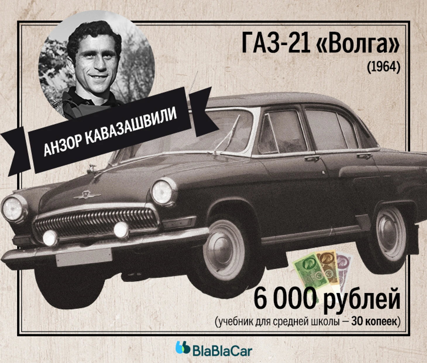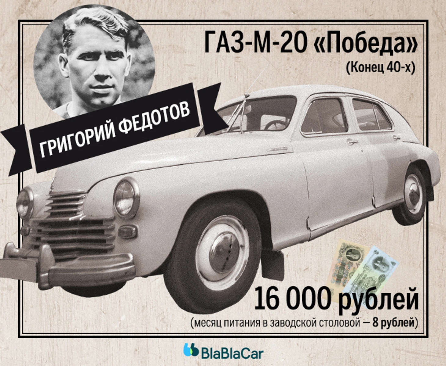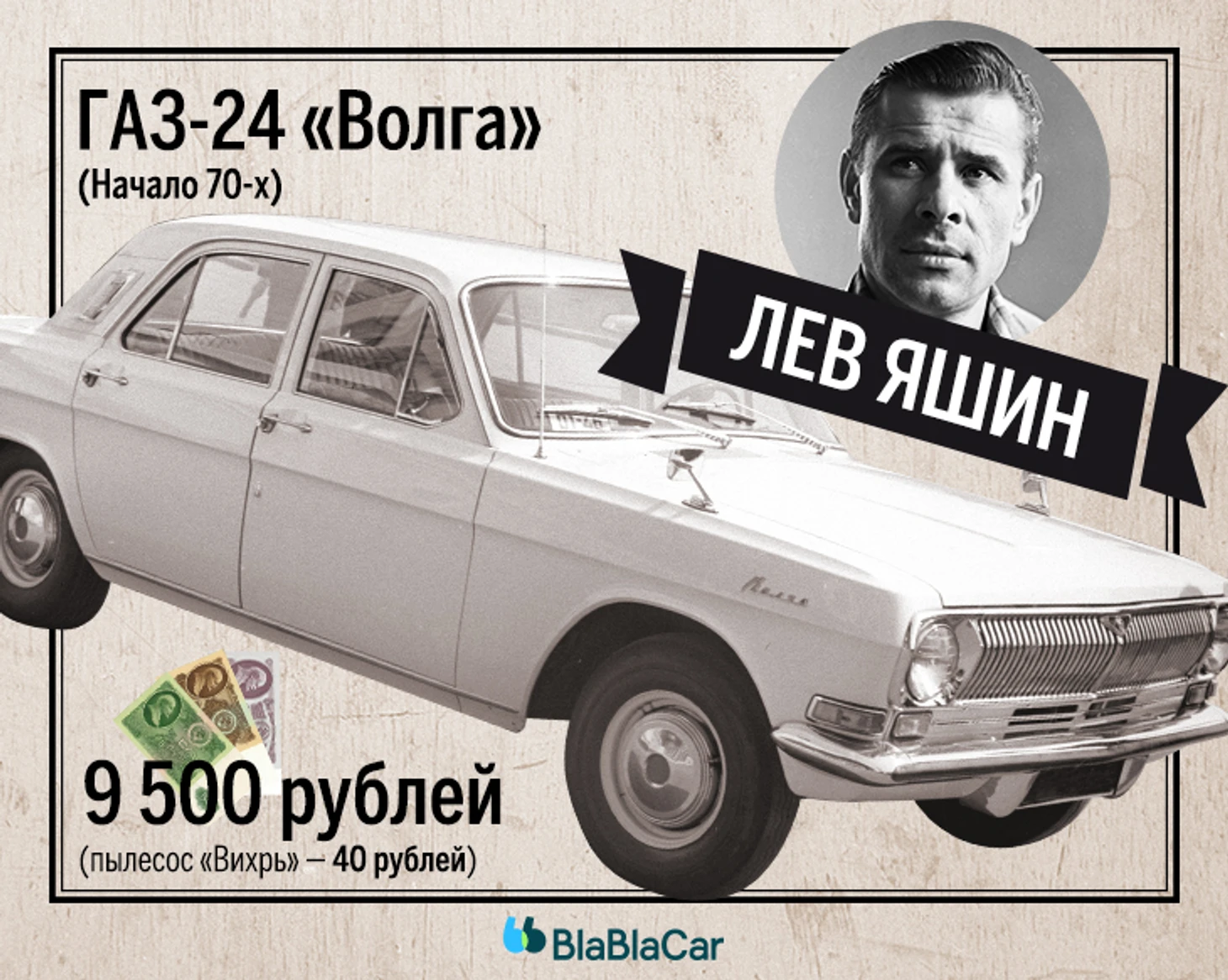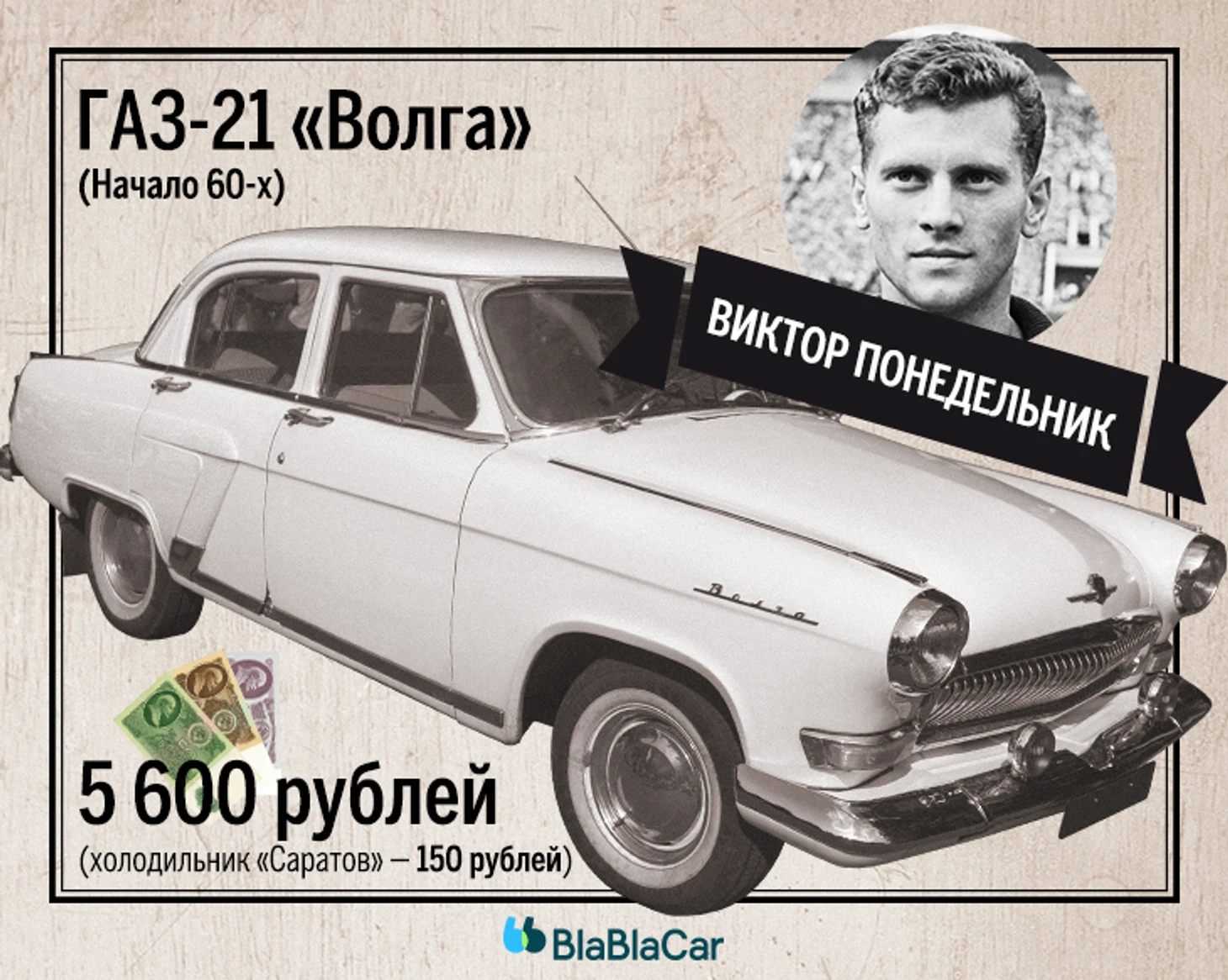 Лев Яшин очень любил «Волги», ездил только на них и однажды получил штраф от болельщика «Спартака», а Виктора Понедельника любили так сильно, что носили его машину на руках. Евгений Ловчев и Олег Блохин перепродавали автомобили и здорово на них зарабатывали в 70-е: оба купили «Волгу» за 9 100 рублей и продали за 15 000.