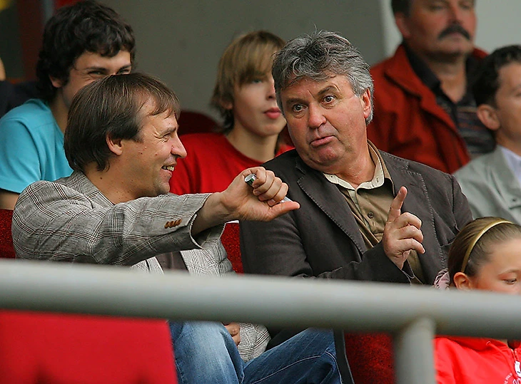 Гус всегда указывал нам на ментальность. Его любимая фраза: «Вы должны быть готовы, что вы не аутсайдеры, играйте с позиции силы, вы фавориты, все время перестраивайте мышление». О том, что команда должна располагаться треугольниками, я впервые узнал на теории от него – между любой тройкой игроков остается треугольник. До этого тренеры говорили про перестроения в общих чертах. Исключение – Юрий Морозов в «Зените», у него мы разбирали все. Сборная же при Хиддинке перестроилась, и очень жаль, что «Торпедо» вылетело, команду премьер-лиги я не нашел, и Евро-2008 прошло без меня.