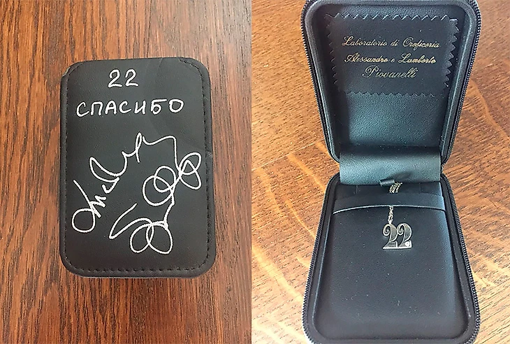 – Он был добрым и щедрым. Когда сборы проходили во Флоренции, водил нас в один из лучших ресторанов. В Дубае возил нас на последний этаж Бурдж-Халифы. Везде при первой возможности поощрял. Когда мы стали чемпионами, каждому сделал персональный серебряный кулон с алмазиком: все подписаны, в красивых коробках. А после победы в Кубке – подарил кулоны, как у морских котиков, где была выбита дата победы. Один с номером носит жена, второй лежит у меня.
