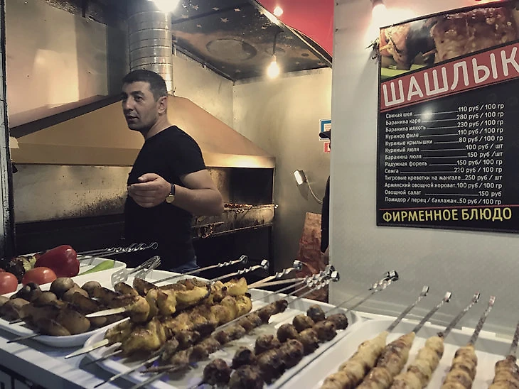 Шашлычника зовут Ашот – он специализируется на баранине и рыбных блюдах.