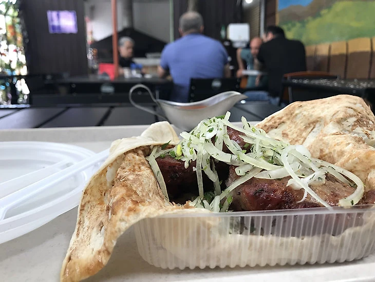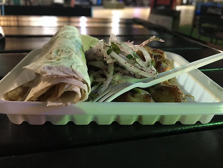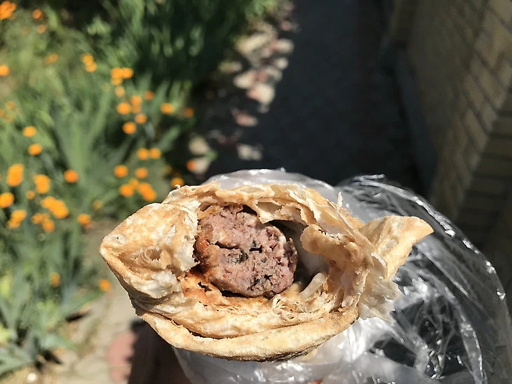 В длинном лаваше, помимо люля, я обнаружил равноценное распределение лука и два слоя соуса – красного и белого.