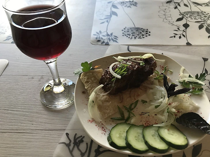 Рекомендую люля из баранины, а к нему – столовое вино.