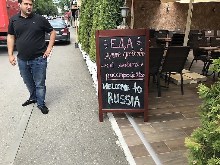 Заранее предупреждаю, брат, что 95% шашлычных Адлера – армянские. Мы – древний народ, который очень-очень любит кушать и готовить. И мы рады накормить всех гостей чемпионата мира. Под это дело мы сделали меню на английском, а первого июня на работу выйдет девушка, которая знает язык. Вот уже и стул для нее подготовили.