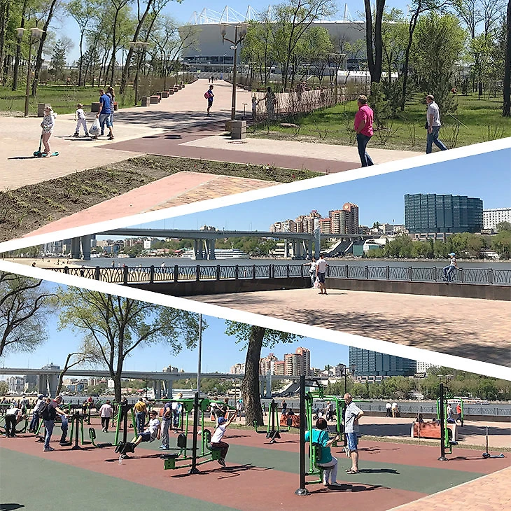 Перед пятью матчами чемпионата мира (Бразилия – Швейцария, Уругвай – Саудовская Аравия, Южная Корея – Мексика, Исландия – Хорватия и 1/8 финала) в парке будут загорать и отдыхать болельщики, есть мороженое и залезать в Дон.