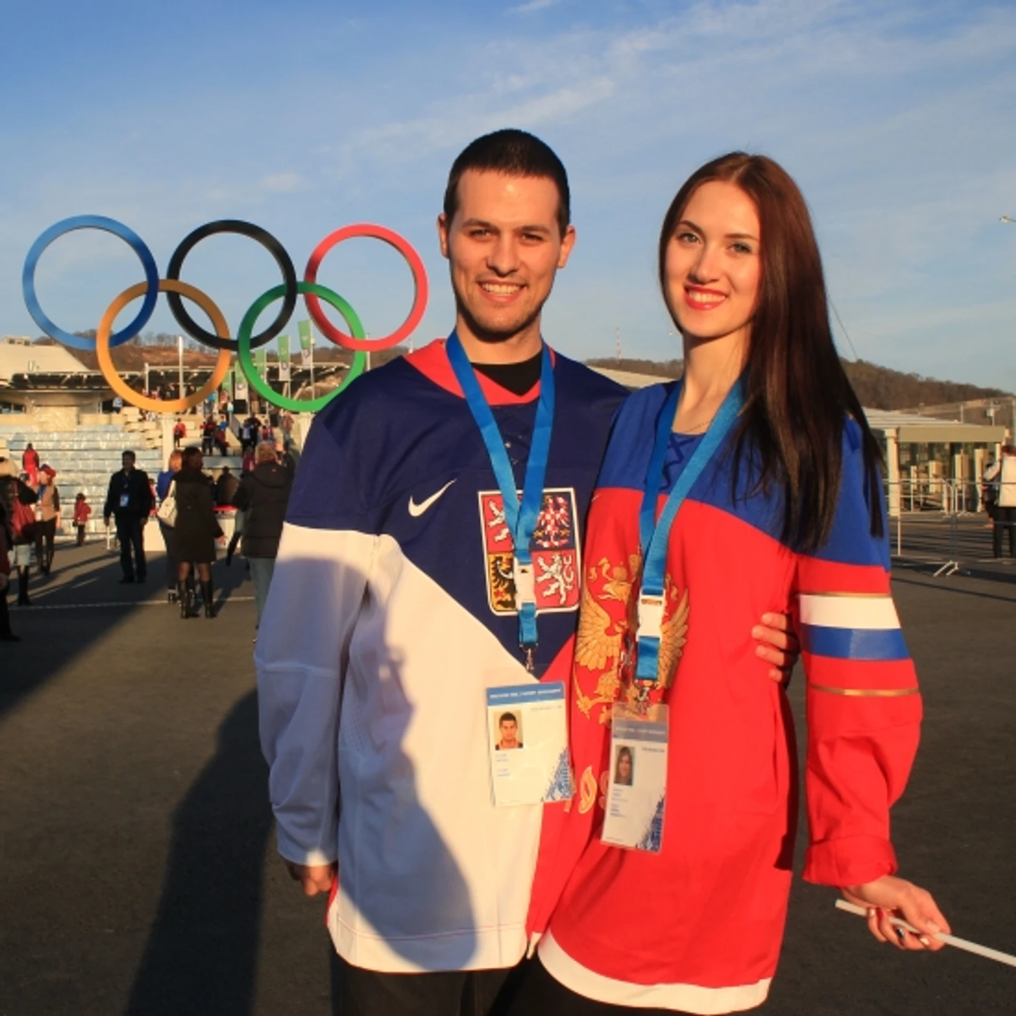 «Михал – чех, я – русская, но уже шесть лет живу в Чехии. Приехали на неделю, наш бюджет – около 50 тысяч рублей. Солнце, пальмы, снег в горах, здесь все безумно красиво! Уже ходили на лыжные гонки, еще пойдем на три хоккеных матча. Я буду болеть за Россию, конечно»
