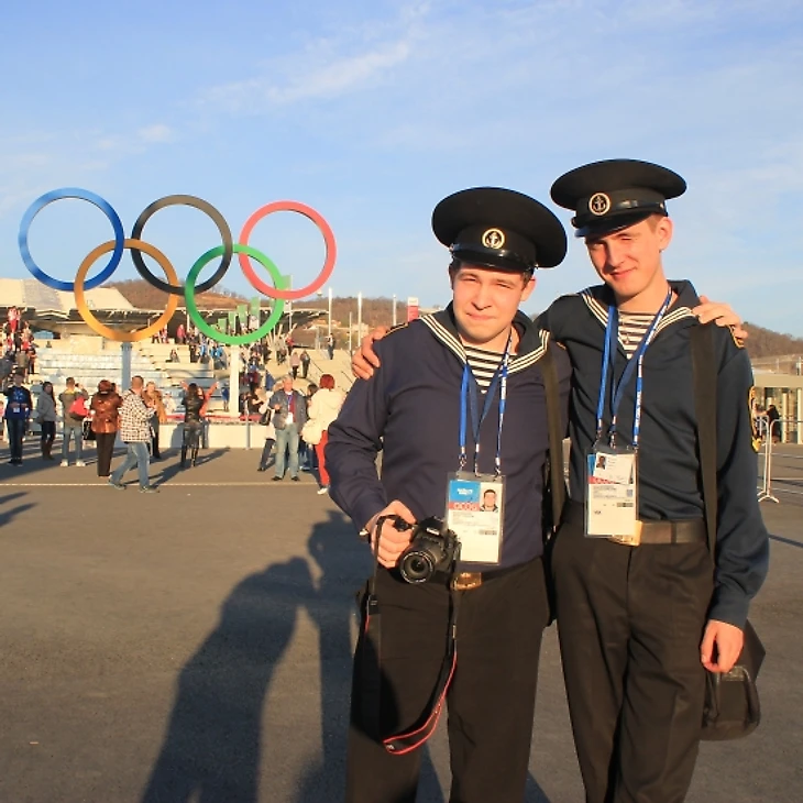 «Мы из Петербурга, первый раз пошли в море. 43 дня, 5200 миль, без заходов в порт. Уходим обратно 25 февраля, а сейчас участвуем в организации Олимпиады. Сначала помогали туристам на Морском вокзале, а сейчас нас отправили в Красную поляну, будем регулировать транспорт. Сегодня мы в увольнении, решили прогуляться. Еще когда на аккредитацию приезжали, поняли, что это отличное место»