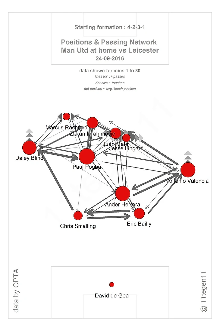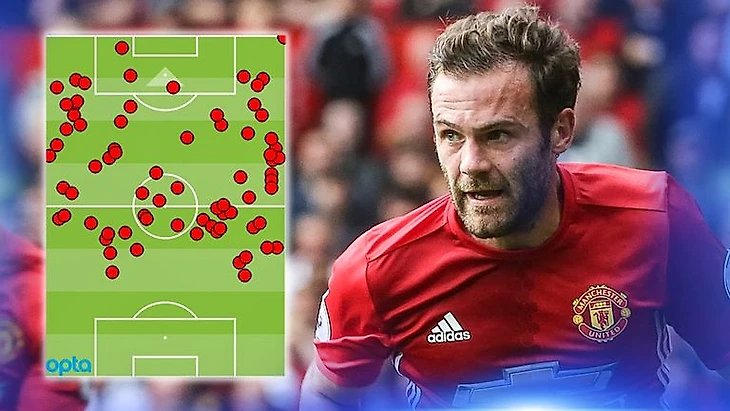 Также важным аспектом игры Маты может быть то, как он влияет на Поля Погба. Уэйн Руни, играя на позиции десятого номера, в своей излюбленной манере часто опускался глубже в поисках мяча, что зачастую накладывалось на зону ответственности Поля Погба. Хуан же, наоборот, чаще оказывался значительно выше француза, давая ему больше пространства и свободы действий, и себя в качестве одного из адресатов для паса в следующую линию.