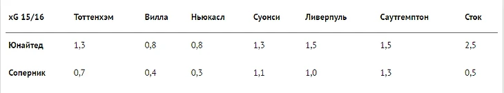 Цифры xG показывают, что Жозе Моуриньо абсолютно прав – показатель выше, чем против «Лестера» (4:1). Главная проблема в том, что «Юнайтед» по-прежнему остается 8-9 командой по проценту реализации (всего 15,3% ударов в створ заканчиваются голами), пропустив вперед «Арсенал», «Ливерпуль», «Сити», «Уотфорд», «Мидлсбро», «Кристал Пэлас», «Халл Сити» и «Лестер».