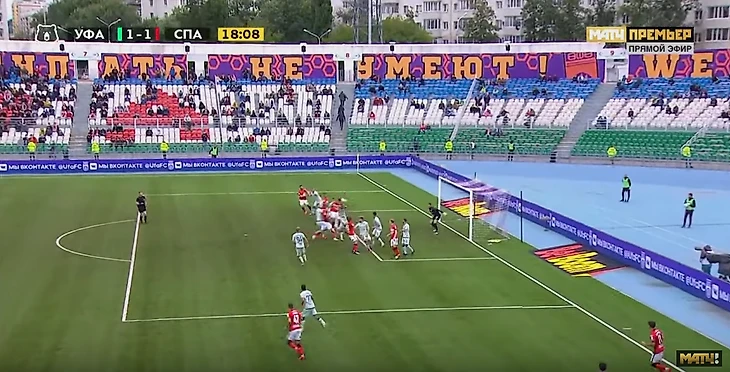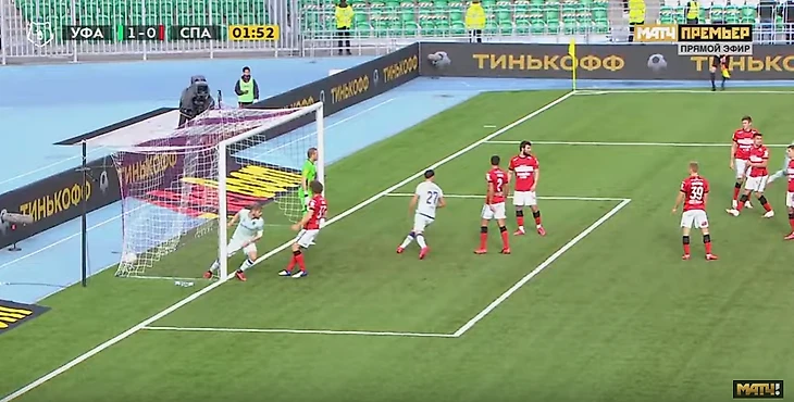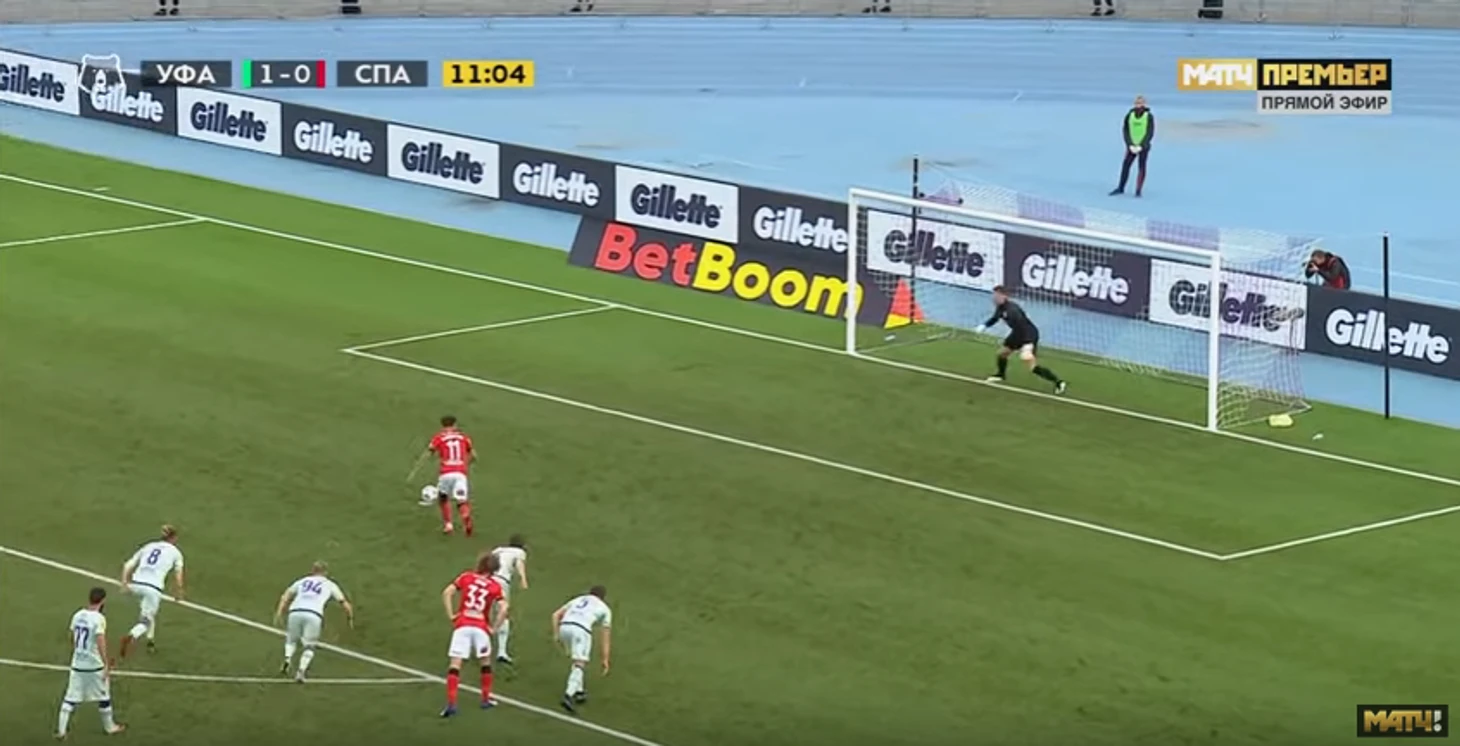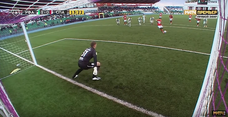 2. Вратарь "Уфы", Александр Беленов, вышел с линии ворот, что запрещено правилами