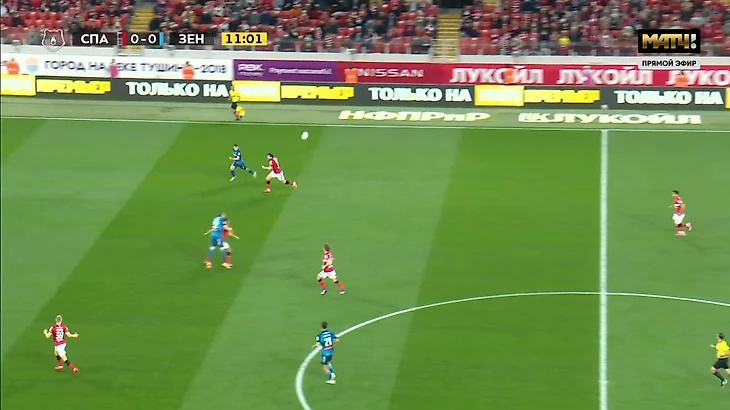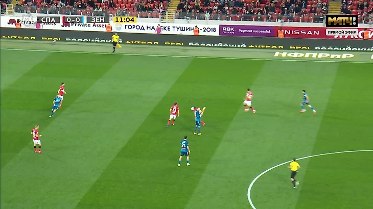 12-я минута, единоборство Дзюбы и Жиго. Форвард питерцев активно намекает на игру рукой защитника "красно-белых". Однако арбитр матча, Павел Кукуян, не фиксирует фол, игра продолжается.