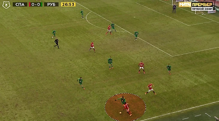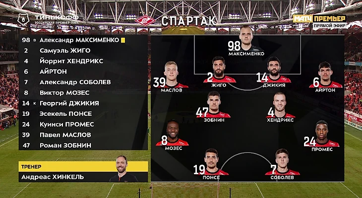 В конце первого тайма "Спартак" остался в меньшинстве, вторую желтую получил Зобнин (о судействе чуть ниже). Появление Крала в перерыве стало ожидаемым, "красно-белым" нужен был игрок в центр поля вместо Зобнина. Однако тренерский штаб москвичей удивил, по крайней мере, меня: поле покинул не Промес, а Хендрикс. Почему, на мой взгляд, именно Квинси должен был досрочно завершить матч? Во-первых, голландец тяжеловато выглядел по ходу первого тайма, часто терял мячи, опасности от него исходило как минимум не больше, чем от остальных игроков. А во-вторых, такое решение было бы более "тактическим": "Спартак" лишился игрока в центре поля, и разумно было бы выпустить кого-то в опустевшую зону. Но тренер предпочел замену, которая, по сути, не изменила построение команды. Если "красно-белые" начинали игру со схемой 4-4-2, то на начало второго тайма схема видоизменилась до 4-3-2, просто Промес и Мозес должны были играть ближе к центру.