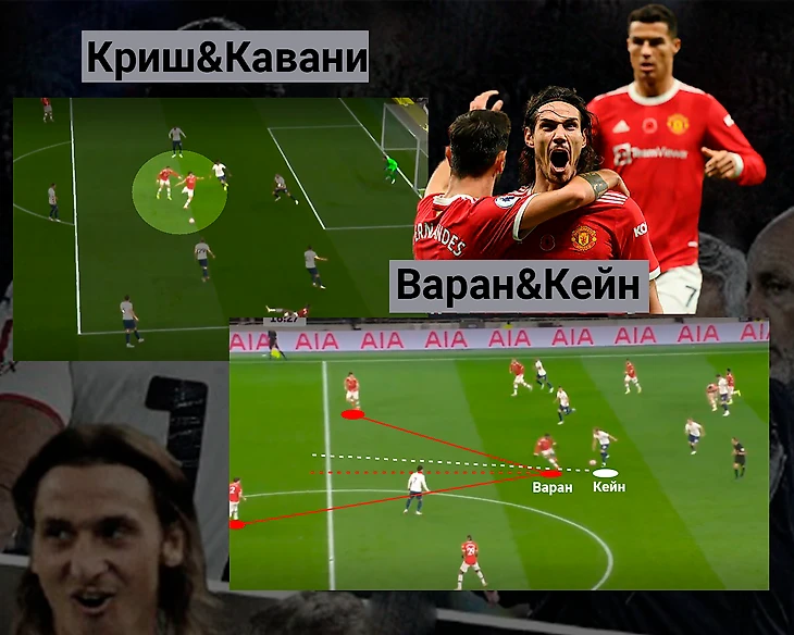 Кажется, такая схема является идельной для стиля МЮ: прессинг с работоспособным Кавани становиться более интенсивным, с тремя защитниками латерали могут более смело оказывать давление на соперника; оборона становиться более компактной; контратаки с первого взгляда могут пострадать из-за возрастных нападающих, но матч с Тоттэнхемом показывает, что за счёт своевременности движения Кавани и Криш могут делать результат. Это первый матч в старте пары Кавани&Роналду, но они уже наладили довльно не плохое взаимопонимание, особенно в прессинге. В игре в штрафной есть небольшие помарки, но потенциально эта пара припрострелах/подачах также является плюсом данной схемы (кроме Эдинсона и Криштиану в этом матче можно выдлеть ещё одну пару - Варан&Кейн. Благодаря плотной игре Рафаэля Англичанин полностью растворился).
