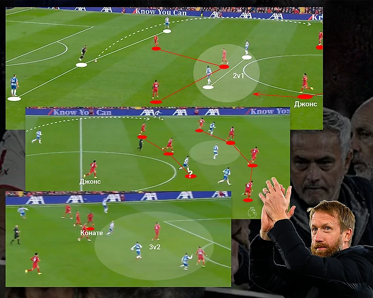 Возможно, Сульшер будет использовать данную схему на постоянной основе, но большинство игроков атаки, которых и так перебор в команде, будут получать очень мало игрового времени, ну и в случае травмы одного центрального защитника в составе нет игрока, способного в полной мере заменить кого-то из тройки. Да, за Манчестер Юнайтед всё ещё интересно следить. Ливерпуль:Брайтон Команда Грэма Поттера получает довольно много положительных отзывов от журналистов, тренеров, болельщиков, и после матча с Ливерпулем Брайтон заслуженно должен получить ещё одну порцию респекта. "Как ты можешь ненавидеть чуваков, которые забивают вот такой гол Ливерпулю?"