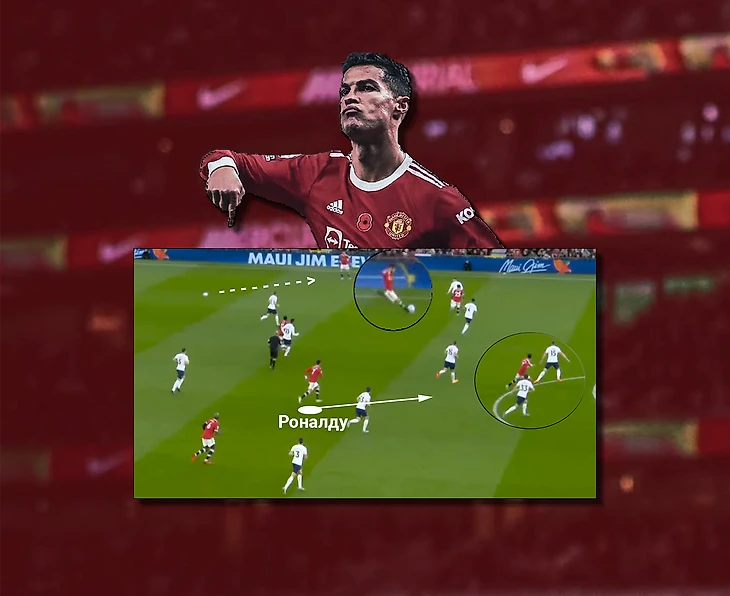 Также Криштиану использовал свой любимый прием - вбегания в штрафную. В отличие от статичного положения рядом со вратарской, рывки в эту зону тяжело персонально контролировать, особенно если мы говорим о человеке с ТАКИМ прыжком.