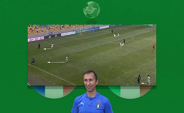 Подопечные Кармине Нунциате (гл.тренер сб.Италии) не смогли воспользоваться свободой в опорной зоне и высоким прессингом, зато хорошую игру с мячом своих центральных защитников смогли конвертировать в гол. Стиванелло умудрился сделать такую передачу, которая отрезала почти всю команду соперников, нападающие сумели грамотно распорядиться мячом и отправить мяч в сетку.