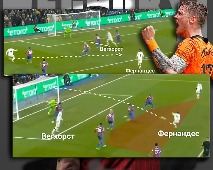 Ваут правда хорош в прессинге - этого от него и ожидали, т.к. по прессинг-метрикам он был очень неплох. Но вот что не отследить с помощью просмотра статистических данных, дак это то, как Вегхорст интерпретирует пространство и создаёт его, а голландец то принял непосредственное участие в голах против Кристал Пэлас и Арсенала!