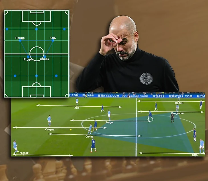 Квадрат Гвардиолы Очевидно, что одним из законодателей тактических мод является такой новатор как Пеп Гвардиола. На матч против Челси испанец выпустил сразу четырех полузащитников: Родри, Силву, Гюндогана и Де Брюйне. Они образовывали четырехугольник в центре - это отход от пеповских канонов, ведь в паре с Родри обычно играет кто-то из ложных фулбеков, будь то Уолкер, Канселу или Льюис.