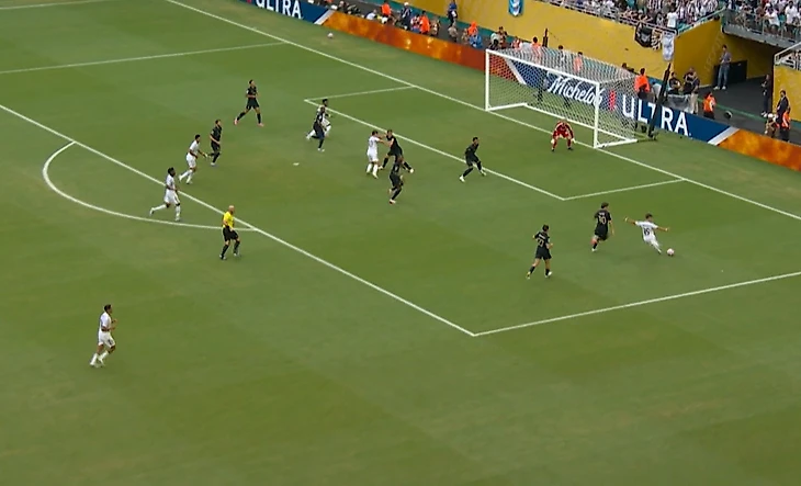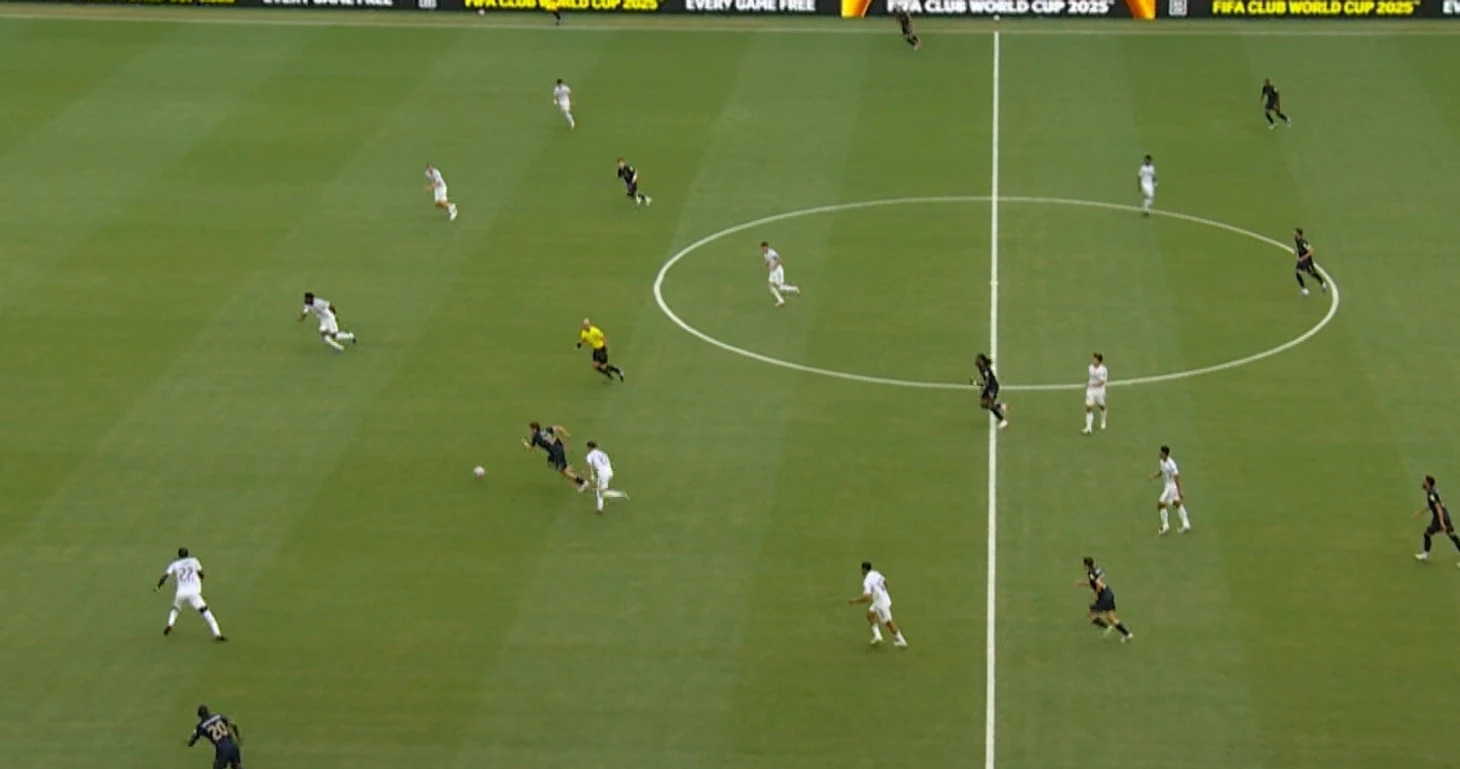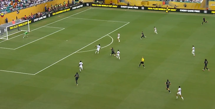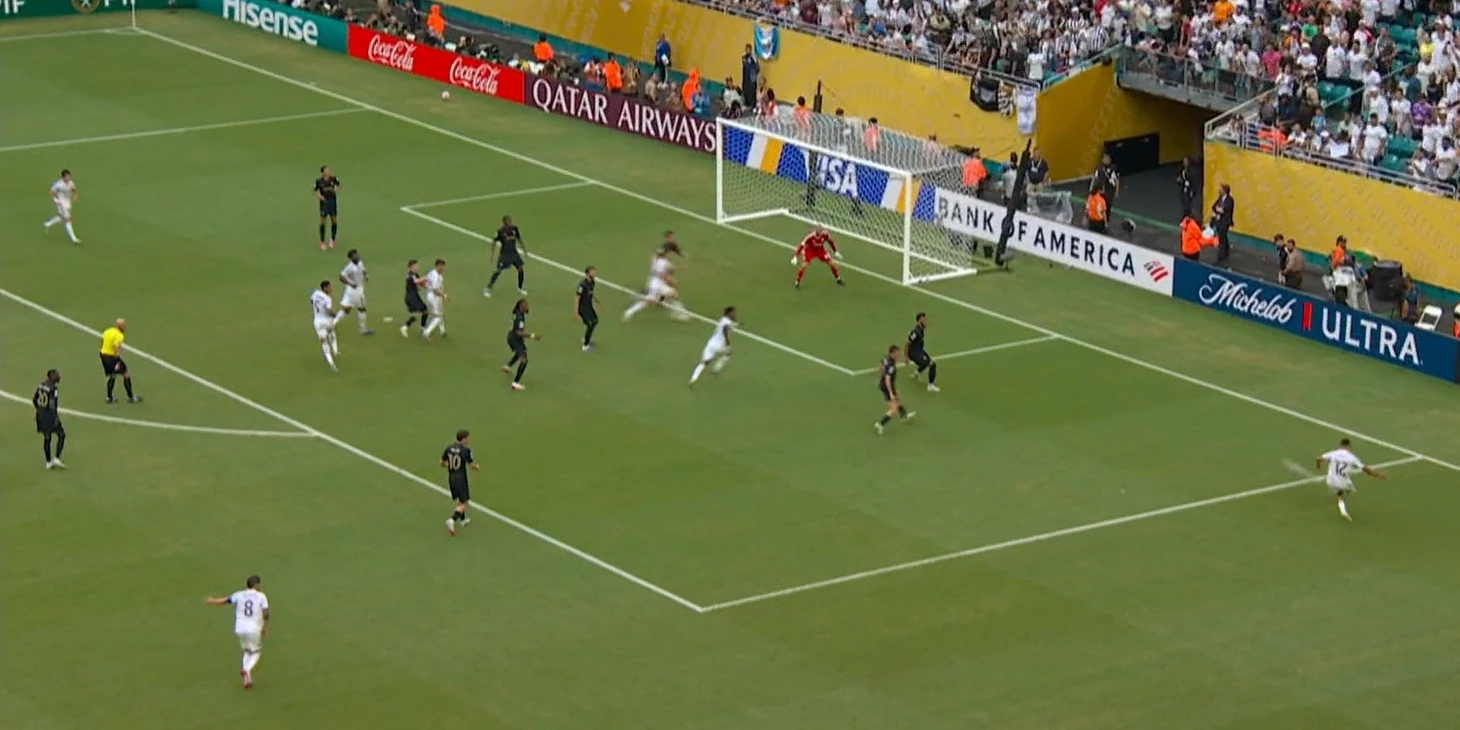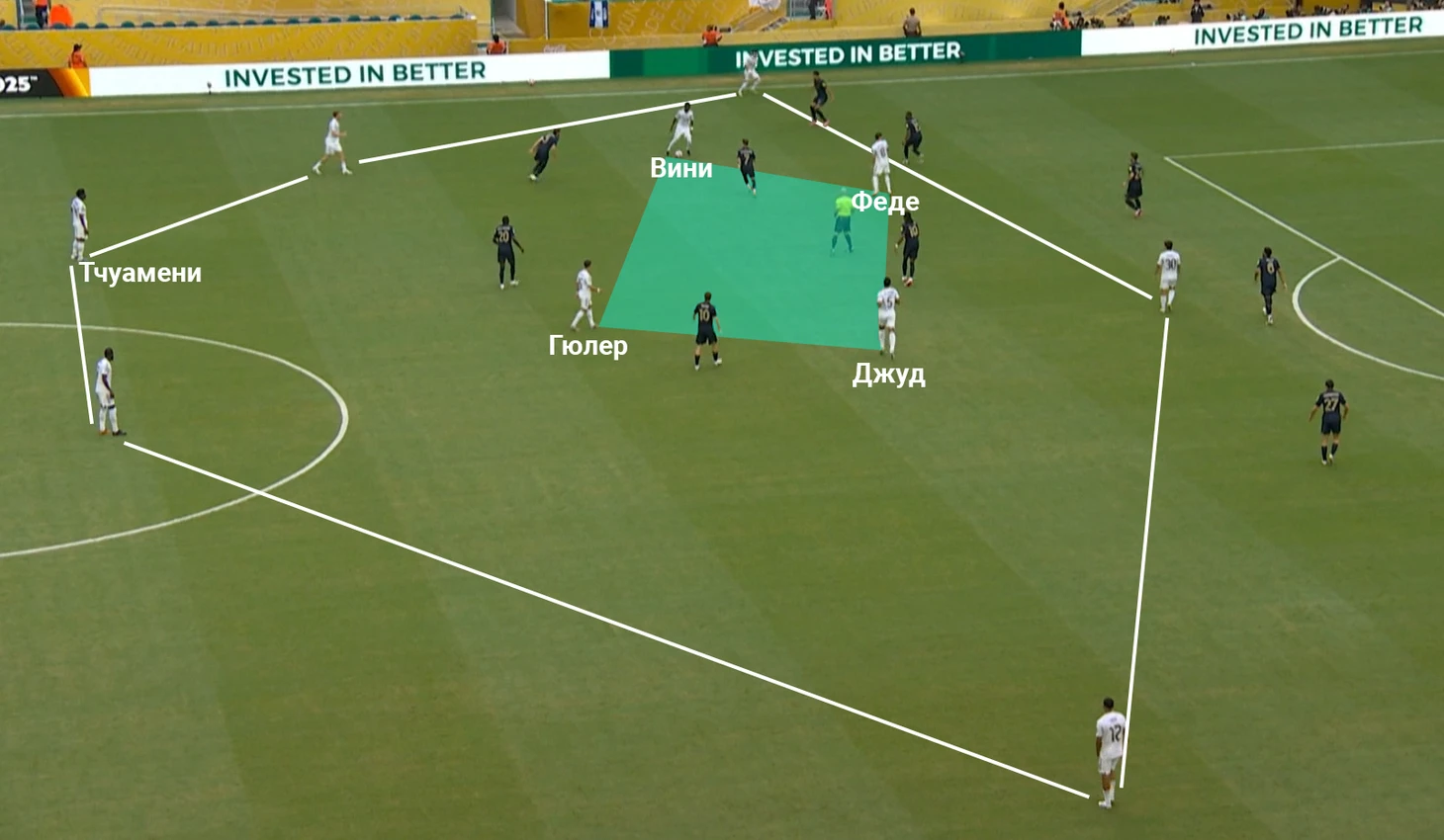 Эпизодически Тчуамени оказался вблизи в штрафной (он изначально ценральный в тройке защитников если что), как вдруг прошла очень даже симпатичная, такая «АлонсоБайеровская» даже, комбинация: