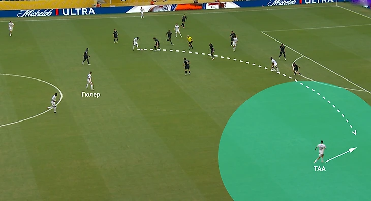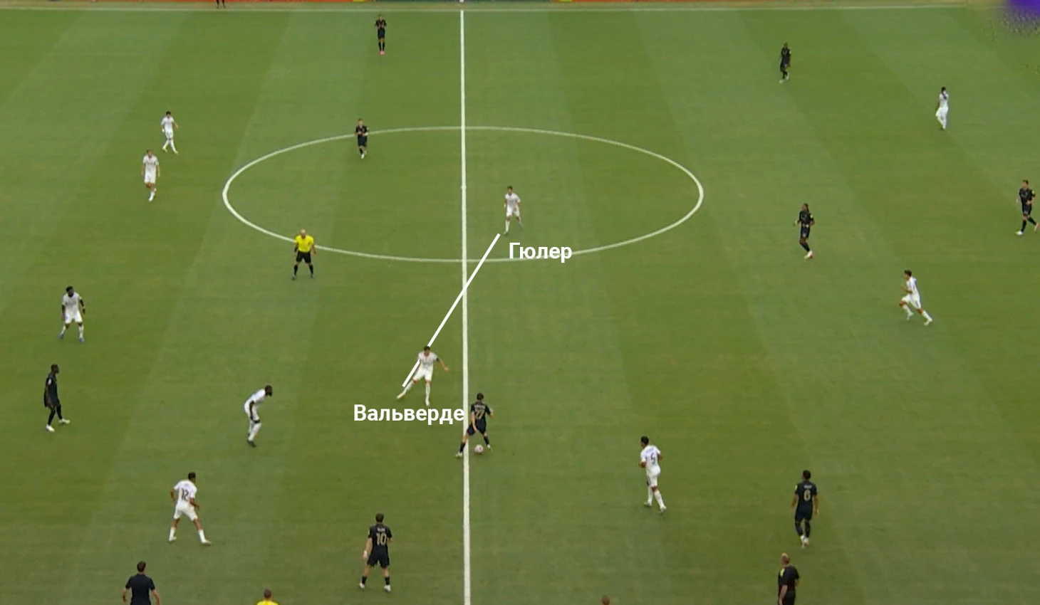 При всем при этом, когда «Реал» владаеет мячом, довольно любопытно видеть Гюлера и Трента рядом. Особенно интересны их ротации позиций. ТАА может делать отличные подачи из ширины, а Гюлер в изоляции на бровке может крутить позвонки крайку соперника: