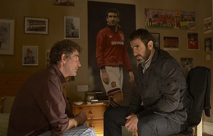 Камео Эрика Кантона: легендарный форвард «Манчестер Юнайтед» играет самого себя и выглядит так же брутально, как на поле.