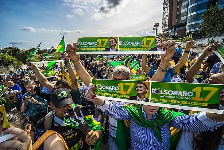 Лозунг Болсонару: «Бразилия превыше всего, Господь превыше всех». Он выступает за традиционные семейные ценности, ужесточение иммиграционной политики, более свободный оборот оружия и возвращение смертной казни. Противники считают его дремучим политиком, который застрял в прошлом и не намерен меняться.
