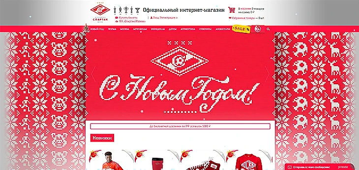 • На главной магазина «Спартака» неторопливо падает снег, а елочка выделяет раздел «Новый Год!». Воздушный дизайн очень радует, атмосфера затягивает.