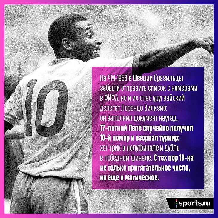 Изначально номера помогали игрокам понимать тактику. Пеле получил 10-ку случайно