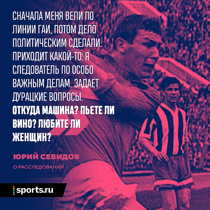 Севидов рассказывал, что на суд давили из ЦК: чиновники возмущались, что он не сел в первый же месяц, и требовали «дать максимум». «Честно говоря, адвокат (Семен Львович Кроник, один из самых известных адвокатов СССР того времени – Sports.ru) задолго предупредил меня, что получу 10 лет».
