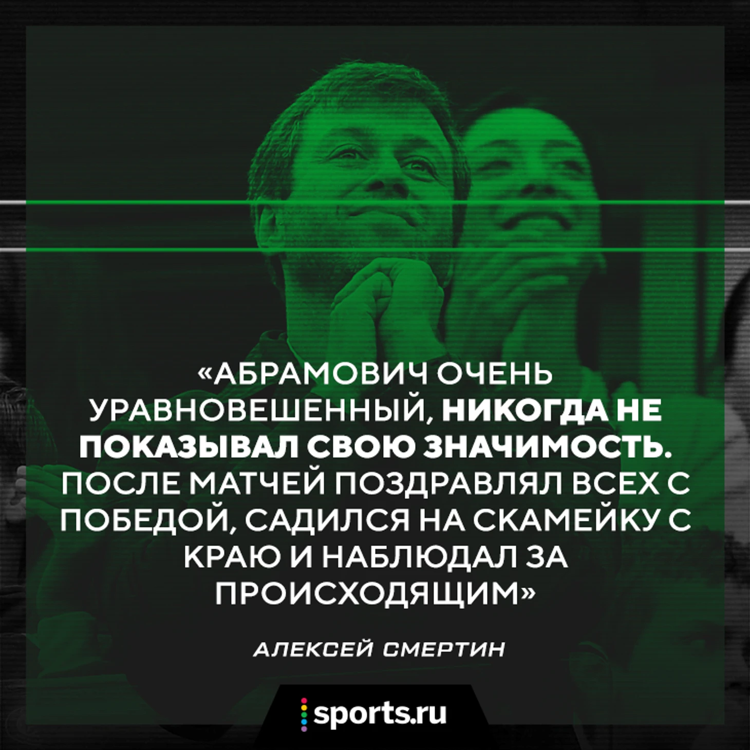 Иногда он подзывал меня, спрашивал о внутренних процессах, как команда себя чувствует. Я никогда к нему не просился, потому что очень не хотел, чтобы пошел этот ассоциативный ряд: Абрамович из России, Смертин из России.