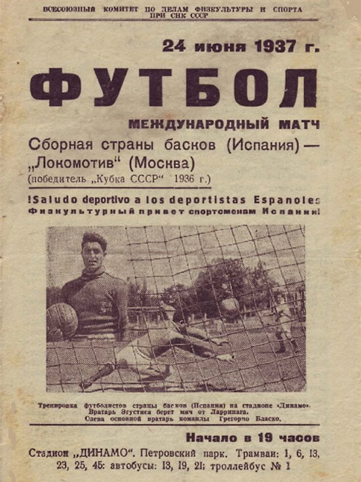 В 1936-м рванул первый чемпионат СССР и был снят фильм «Вратарь» Семена Тимошенко, после которого все напевали «Эй, вратарь, готовься к бою, часовым ты поставлен у ворот». Дети хотели отбивать удары, как главный герой Антон Кандидов, интерес к футболу в СССР расцветал. А летом 1937-го все окончательно сошли с ума: в Союз на несколько матчей прилетела сборная Страны Басков.