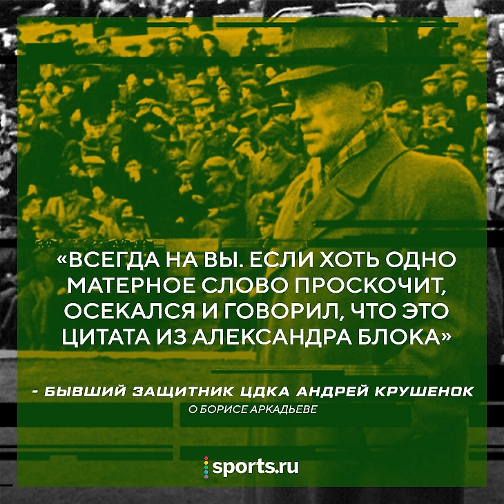 Борис Аркадьев – это человек, о котором мы часто слышим, но мало что помним. Он начал тренировать еще в 1937-м, а закончил в 1969-м, став легендой «Динамо» и ЦДКА, с которыми шесть раз выиграл чемпионат СССР. Возглавлял Олимпийскую сборную Союза и относился к людям и жизни так, что никто из окружения не помнит про него чего-то сомнительного или неловкого.