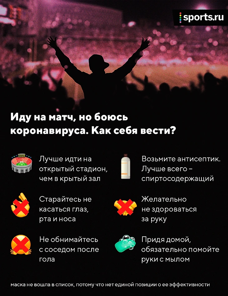 Чтобы понять, адекватно ли ведет себя спортивный мир или это паника, мы связались с врачом-эпидемиологом и сотрудником Роспотребнадзора (попросил не называть имя): он ответил на самые частые вопросы и объяснил, что делать, если вы собираетесь на стадион.