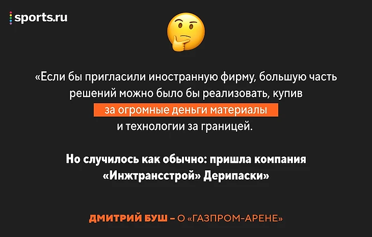Мы поговорили с Бушем о тонкостях его ремесла и обсудили болезненное: почему в России так дорого и долго строят стадионы.