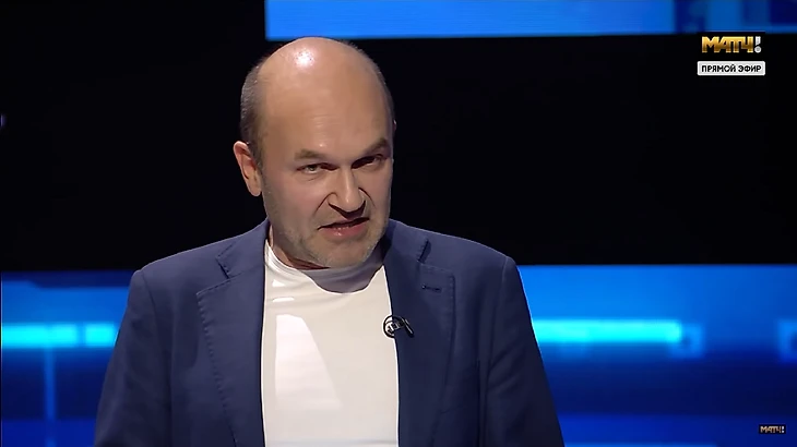 В студии – призер Олимпиады по скелетону Елена Никитина, комментатор Дмитрий Федоров, вирусолог Георгий Викулов и люди, за которых наверняка отвечал бывший продюсер «60 минут» – обозреватель «Коммерсанта» Максим Юсин и политолог Михаил Синельников-Оришак. Юсин появляется во многих выпусках «Время покажет» на «Первом» (это там ведущий Артем Шейнин угрожает американским экспертам и бравирует, что убивал людей), а Синельникова-Оришака, который еще в 2020-м регулярно выступал в «60 минутах», сейчас цитируют Russia Today и «Царьград».