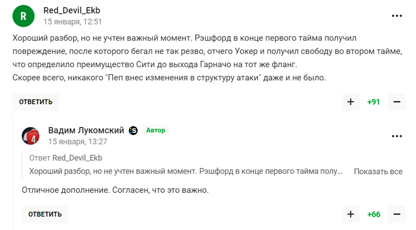 Про вещи, которые связаны с процессами другого рода – например, как управляется клуб, насколько хорош его менеджмент – в комментариях иногда пишут супераргументированно, дополняют и могут менять мое мнение. Я не очень часто пишу о таких вещах, но читаю комментарии под текстами других авторов, и они влияют на мое восприятие.