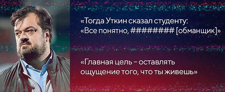 Помню, как лет десять назад Вася собеседовал новых корреспондентов. Он собрал в кафешке на первом этаже Останкино человек 11, которые до этого прислали ему на почту эссе. Они сидят в кругу, и Вася такой: «Как тебя зовут?» Предположим, Дима. Вася продолжает: «Дима, любишь театр?» – «Да, люблю». А теперь представь картину: перед тобой Уткин, ты вжался в кресло, готов отвечать что угодно, лишь бы произвести впечатление. Вася говорит: «На какой спектакль в последний раз ходил?» Парень запнулся и не смог ответить. Тогда Вася сказал: «Все понятно, ######## [обманщик]. Нам не подходит». И все. На первой секунде человек исключен.