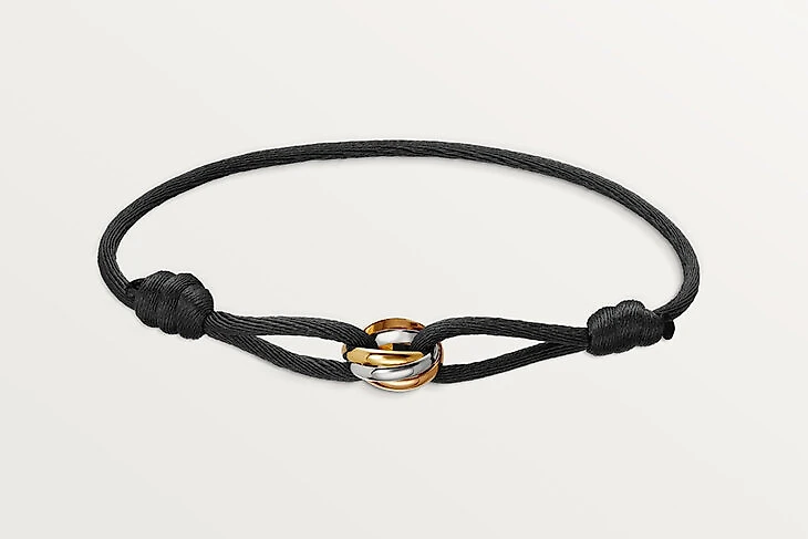 – Cartier для жены. Браслет со сменными веревочками, на них три золотых колечка.
