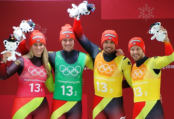 Единственная дисциплина в санном спорте, где сборная Германии может выиграть только одну медаль! Эстафета лишь второй раз в программе олимпиады. В этот раз, как впрочем и в прошлый, немцы взяли золото.